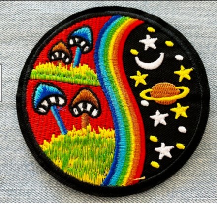 Item : Space Mushroom Embroidered Patch Trippy Hippie Embroidery Patches Iron Sew On